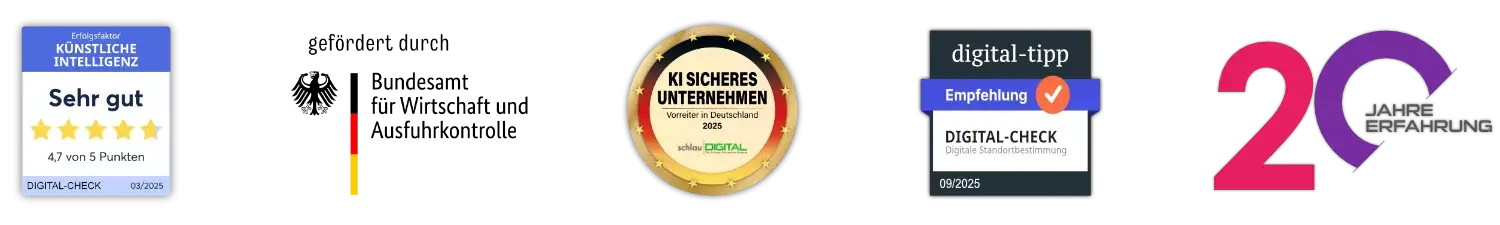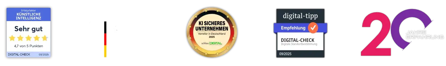 Du erkennst auf einen Blick, wo dein Unternehmen digital gut aufgestellt ist – und wo sofort Handlungsbedarf besteht.